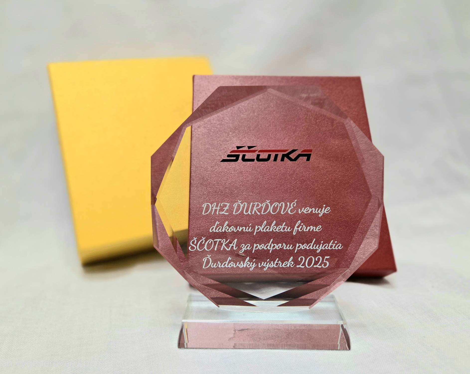 V roku 2025 sme s hrdosťou podporili 25. ročník hasičskej súťaže o putovný pohár veliteľa Jána Ďuriša ĎURĎOVSKÝ VÝSTREK. Ako poďakovanie za podporu podujatia v roku 2025 venoval DHZ Ďurďové našej skupine ďakovnú plaketu.